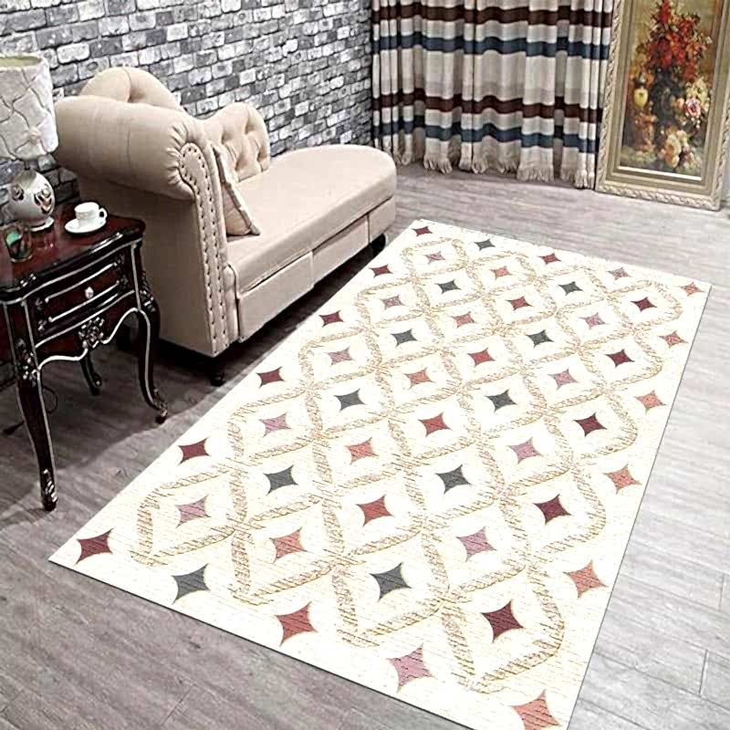 Geometrik Karo Desenli Dijital Baskılı Halı
