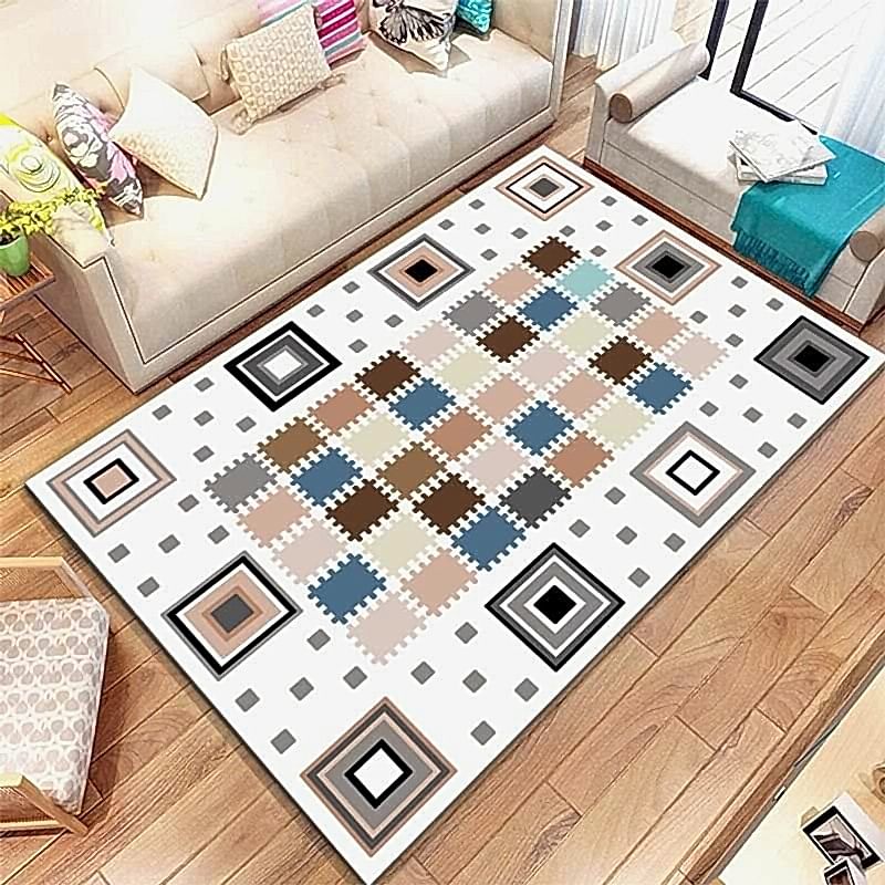 Kare Desenli Dijital Baskılı Halı