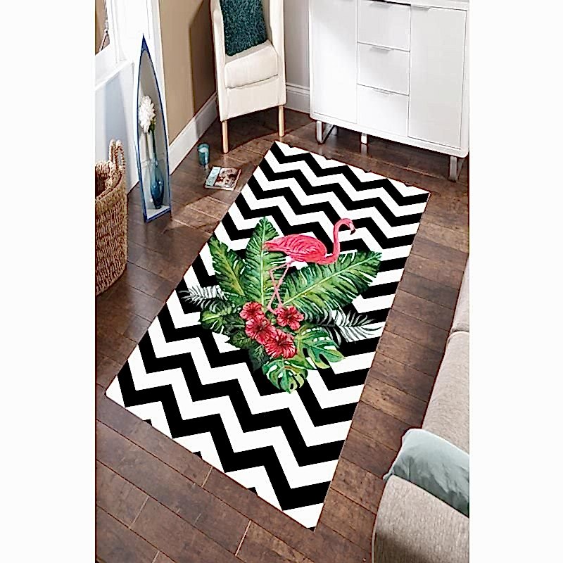 Flamingo Çiçek Desenli Dijital Baskılı Halı