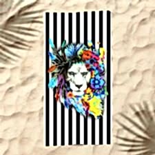 Çizgisel Aslan Dijital Baskılı Plaj Havlusu
